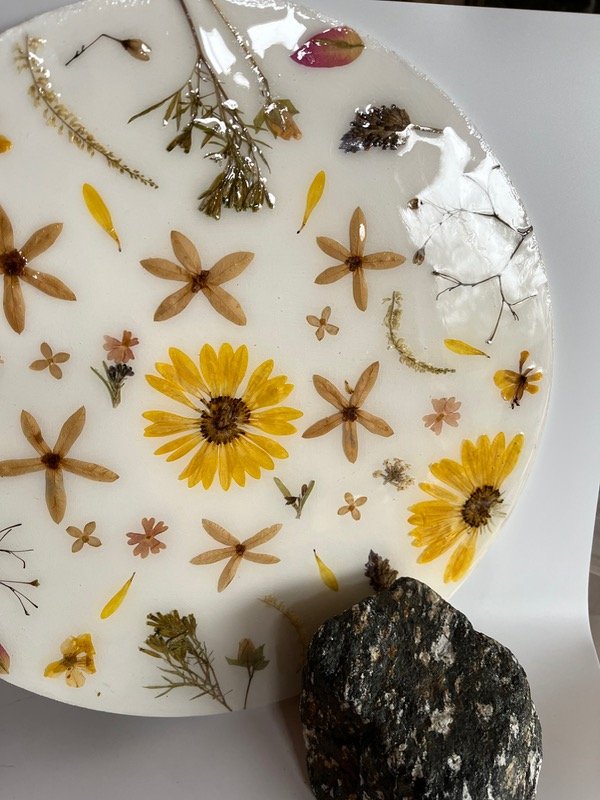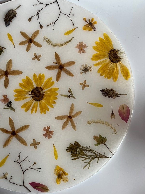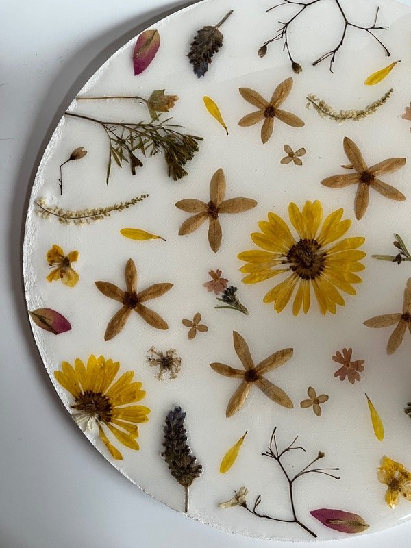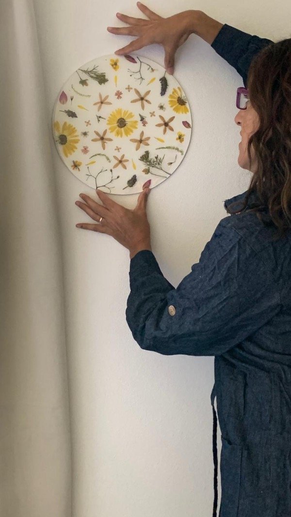 Cuadro redondo decorativo con flores variadas secas y prensadas
